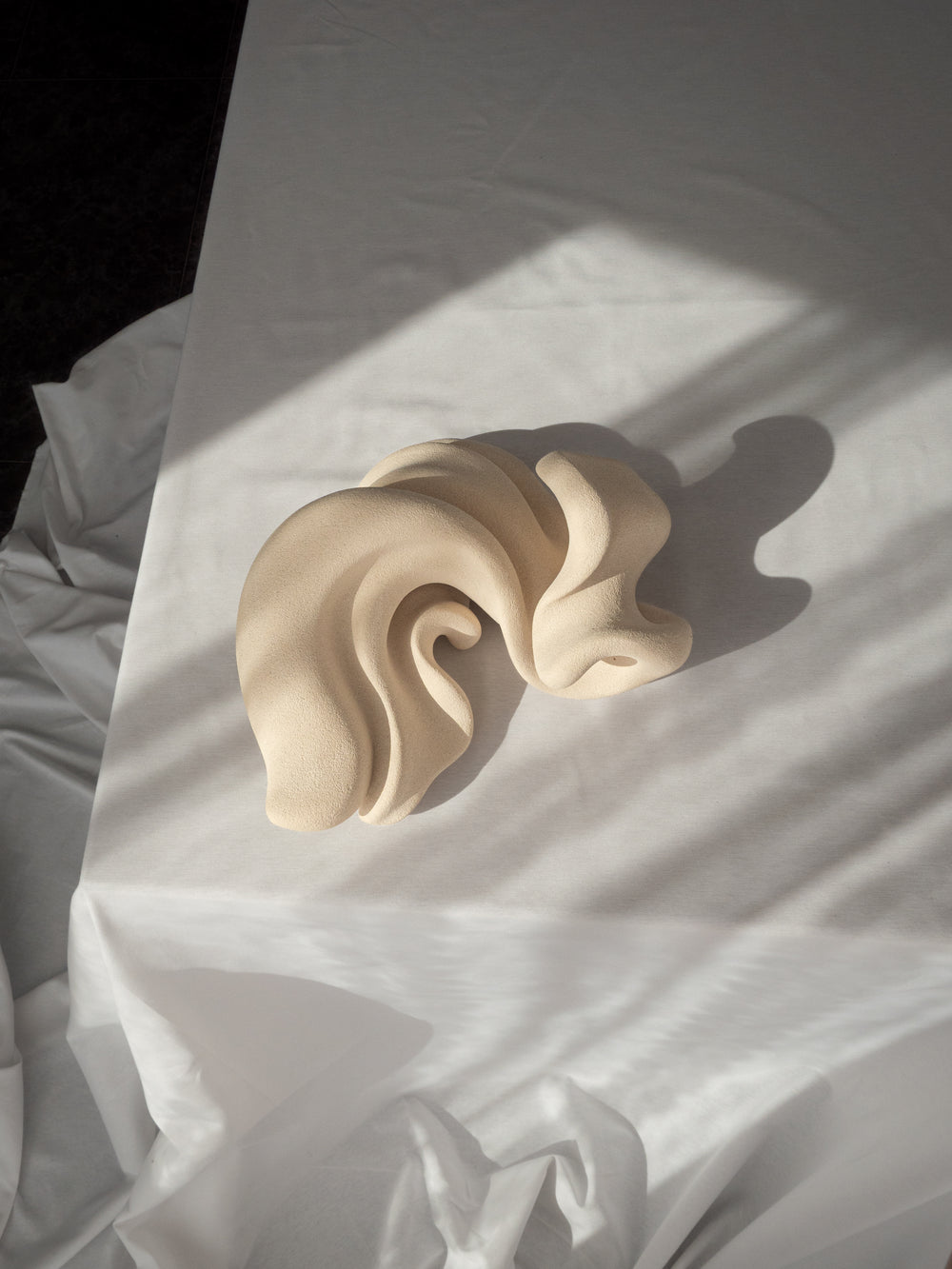 Aleksandra Krasnopolska is a contemporary artist from Odessa, Ukraine. Aleksandra worked as an architect and interior designer before turning to sculpture. When she picked up clay for the first time, she fell in love with the material. The sculptures are made using a process that the artist refers to as "flow art." Every piece is a form of meditation. This sculpture speaks of the self that emerges not in the turbulence of emotion or fleeting euphoria, but in the Lucid quiet that lies beneath. True presence begins where reaction ends - not driven by impulse, nor lost in memory or anticipation, but anchored in the timeless now. There, in the hush of awareness, we meet ourselves as we truly are. 2025.