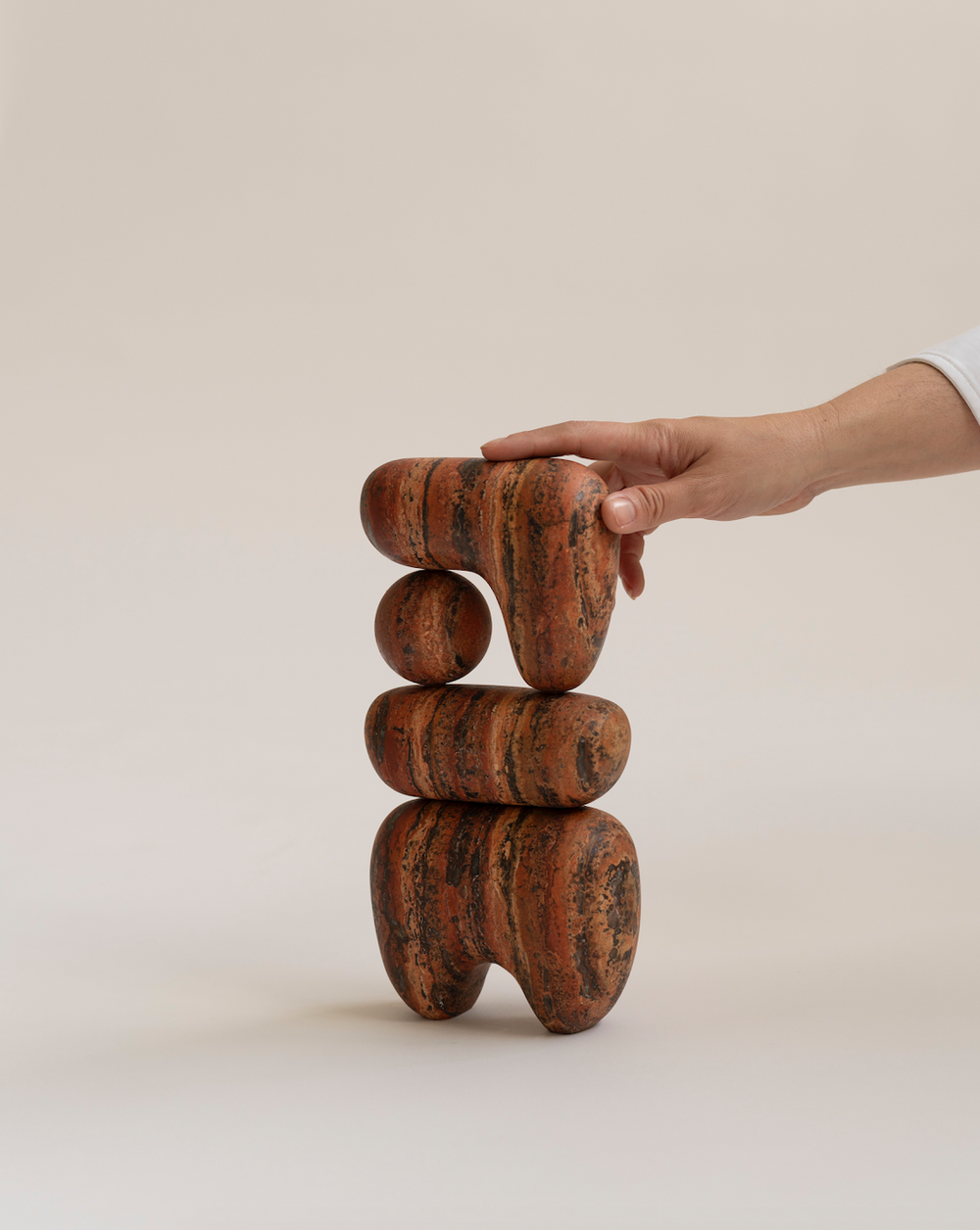 Rebeca Cors, born in Mexico in 1988, is a sculptor whose work bridges the worlds of art and utility. Deeply rooted in Mexican traditions and craftsmanship, she reimagines ancestral techniques through contemporary design. Her pieces explore the intersection of sculpture and function, creating objects that evoke stillness, balance, and a sense of connection to nature and the human form. Handmade in Mexico using local materials, Cors’ work honours cultural legacy while inviting quiet contemplation. 2025. LIMITED EDITION of 20 + A.P.