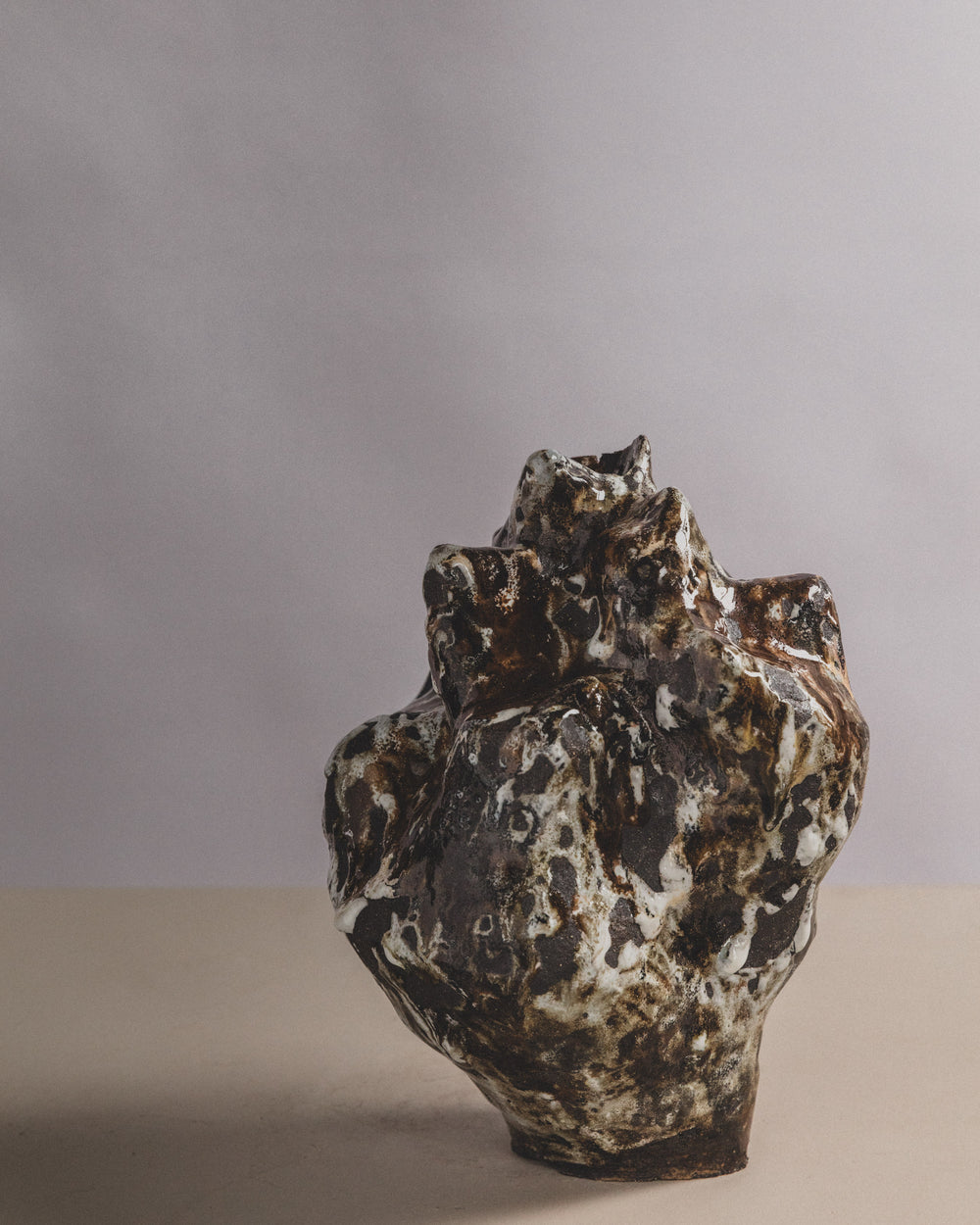 Ilona Golovina (Stavropol, Russia) is a New York based artist whose ceramic practice is rooted in ancient techniques and guided by a philosophy of surrender. She embraces chance as a collaborator, inviting natural forces to shape the work alongside her hands. At the core of her work is the vessel - not as a functional object, but as a metaphor for the human experience, carrying memory, emotion, and story. Every curve, crack, and void becomes a testament to resilience and the dialogue between intention and the unknown. Golovina often works directly with the land, pressing clay into the earth to capture imprints of landscape. Her “soil paintings,” made with wild clays foraged across the U.S., preserve the raw, unpolished beauty of place. 2025.